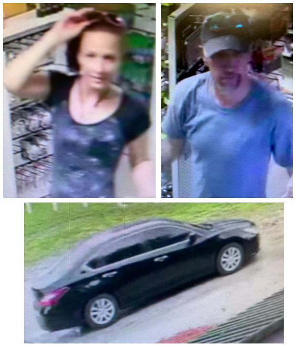 Security video showed the suspect to be a white male who was accompanied by a white female. The vehicle they used was a black sedan.